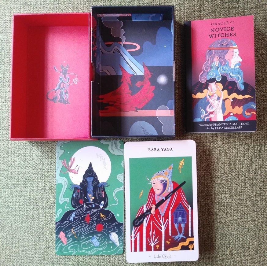 Rachelcat Posted April 22, 2023 Posted April 22, 2023 18 hours ago, fire cat pickles said: new Minchiate al Leone Di Girolamo book along with it 🙂 New book??!! I'll be checking that out! In the meantime: Ugh! I’ve had so many decks come in that I can’t decide which to do next, so to solve my ridiculous indecision, I just made up my mind to do them in date-received order (but skipping over two historical tarots and two historical playing card decks!). That means this week is Oracle of Novice Witches: Messages from the Magical World! (Stay tuned for the rest of my new decks in coming weeks!) I had to show the insides of the box! It’s a U.S. Games deck with an Italian author and artist are Italian, and originally published by an Italian publisher. I think I went over this in the postman thread, but here we go again: The cards are: 12 female witches, legendary and real (including Mme. Blavatsky and Starhawk) 12 wizards (I like to call them male witches), legendary and real (including Giordano Bruno and Crowley). There seems to be more real male witches than female, but maybe that’s because their names are more known? 13 witch’s tools 13 animals/familiars All with keywords. I’m not sure why they’re novice witches? Or maybe the reader is the novice learning from the witches on the cards? The art is a little psychedelic, especially for the animals, but not as much as the unicorns! So with 50 cards, a full interview is in order! What is your most important characteristic? Baba Yaga, Life Cycle I like her birch trees and toadstools, meaning new beginnings. And her chicken-legged hut, of course! The deck shows the old and the new together, fairytale crones alongside second-wave feminists! What is your greatest strength? Cauldron, Rebirth Same as above: It’s traditionally witchy, with its witch’s brew, etc., but it can be helpful in real-world ways. It repackages Halloween witches as actual wisdom. What is your weakness? Dog, Loyalty Maybe it adheres a bit too closely to tradition? What can you teach me? Cat, Independence I would like to learn to be independent like a cat! Actually, I feel like I am to some extent. It looks like some witch on mushrooms has painted her black cat. But I don’t think a cat would stand for that. Too independent! How can I learn it? Prospero, Faith I can be more independent by trusting and having faith in myself. And by being empathetic and compassionate. Prospero was a very powerful wizard, but he only made good things happen (for himself, his daughter, and others) when he gave up control and revenge and began to act with empathy for his enemies and his servants. What will be the outcome of our work together? Marsilio Ficino, Tradition I get my Renaissance mages mixed up, so I better check the booklet. He tried to blend ancient and Christian ideas, and was an astrologer. So the card means you have to know the rules in order to successfully break them. The deck will lead me to research more on witchy history and topics. And I’ll understand and appreciate them better, even if I don’t agree with them or put them into practice. I'm liking it so far! See you around this week!
