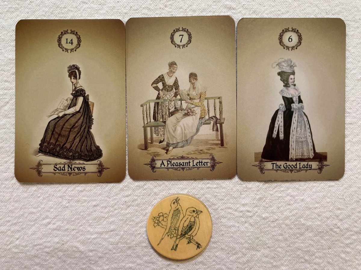 Madame Squee Posted June 20, 2023 Posted June 20, 2023 This week: Kipper Cards (Alexandre Musruck) and Flonz Victorian Lenormand (on poker chips). This reading is for a seeker who has been waiting to hear back on a job interview. They want to know what will be the response from the prospective employer. The middle card is the topic of the reading. The left card describes the topic. The card on the right is the answer or "punctuation" to the reading. Unfortunately, A Pleasant Letter modified by Sad News looks like a rejection letter. The Good Lady on the right is a character card. She represents a mature person, an ally, a positive influence. This card may also can represent a situation that requires time to mature. Since The Good Lady is turned away from the letter, I feel like she's not on board with the rejection of the seeker's application. My feeling upon viewing these cards was that although this particular job may not materialize, another one could come about for this seeker due to the influence of a person within the organization who is kindly disposed toward them. (Maybe The Good Lady was the person who interviewed the seeker.) Finally, the Birds can represent twos and that attribute adds support to my impression that a second job with this employer is coming available. Also, I feel like the appearance of The Birds means the seeker has made an exciting impression at the organization to the point that people are discussing them. Ultimately, I feel like this is a classic case of being the second choice for the job. That, or the first choice for this job won't work out.