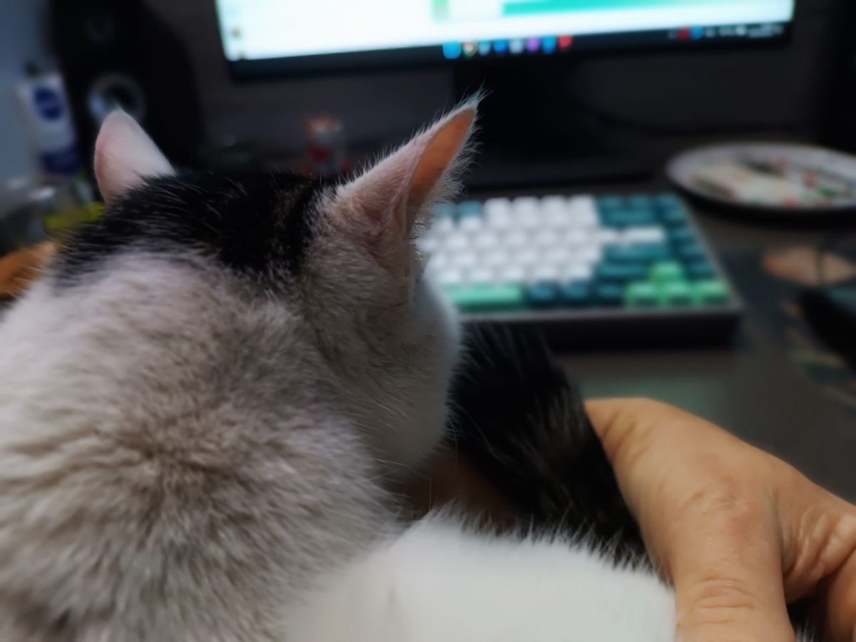 Eugenie Posted January 2, 2024 Author Posted January 2, 2024 1 minute ago, akiva said: That's so kind of you to say! Thank you 😊 there's something very relaxing/soothing when a cat cuddles up with you, it's such a sweet thing. They only do it with me though, not with my partner 😅 is that something you experience with your cats? Quite funny, my cats mostly cuddle with me and my daughter. Our elder cat agrees to sleep with my husband, but she doesn't sit on his desk when he works the way she sits on mine and doesn't come to be petted. He sometimes feels a bit neglected by the cats. And all the cats want to claim me and my left arm as a pillow when I work. More or less like this (it is the youngest one called Betelgeuse).