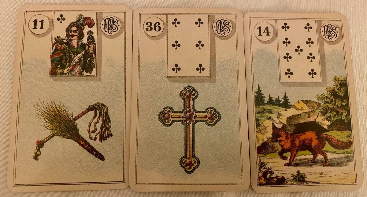 KingOfPents Posted January 16, 2024 Posted January 16, 2024 Just wanted to share a Lenormand related story with you all. I am thinning out my Tarot collection so I asked my Lenormand deck where I should photograph these decks before I put them up on eBay. These are the cards I pulled: Whip + Cross + Fox I really had a hard time interpreting this one, initially. I took a step back from racking my brain and went down to make a cup of coffee. While in the kitchen, I thought maybe I should take them in the kitchen after thinking about the Whip and the Cross. Wasn't sold on it. So I walked into my dining room, crashed into the dog, and spilled coffee on my shirt. When I looked up to the sky to choke down my rage, I saw the painting above my dining room table of a 19th century fox hunt. I guess I'll be taking photos in the dining room... Lenormand is so shockingly obvious sometimes. I've been struggling putting together the meanings of cards in mutli-card readings lately...almost like writer's block. This was a kick in the pants to take a step back and just look at the cards from a very basic point of view.