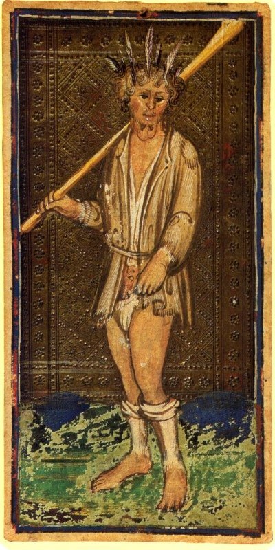 Pio2001 Posted February 13, 2024 Author Posted February 13, 2024 (edited) Looking for old pictures, I came across the seven vices, painted by Giotto around 1305 in the Scrovegni Chapel of Padua, in Italy. Don't you find that these two look similar ? On the left: Stultitia (Foolishness), by Giotto, between 1304 and 1306. On the right, il Matto (the Fool), by Bonifacio Bembo, from the Visconti-Sforza tarot. Between 1456 and 1458. Same cudgel. Same feathers on the head. In the Scrovegni Chapel, Giotto painted Foolishness in opposition to Prudence. Sources : Wikimedia https://it.wikipedia.org/wiki/Mazzi_Visconti-Sforza https://en.wikipedia.org/wiki/Foolishness Edited February 13, 2024 by Pio2001