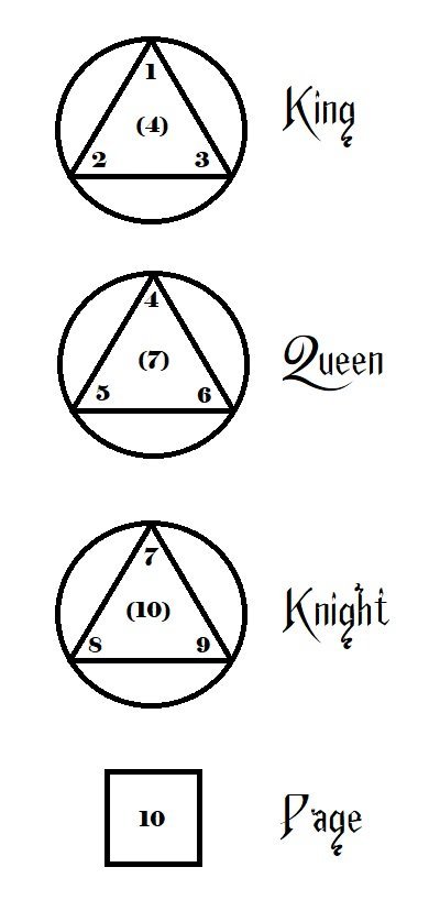 Flegetanis Posted March 4, 2024 Author Posted March 4, 2024 The basic "model" or numerical "archetype" used by the Martinist School is the Tetragrammaton. The application of this is to first contemplate the cards in groups of three, plus a fourth. This is represented by a cross, at first, and then by a triangle, where the "fourth" (letter or image) is in the center of the triangle. This can then be doubled into a group of seven cards.