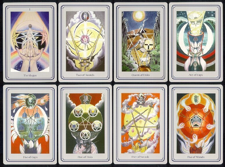 Flegetanis Posted March 7, 2024 Posted March 7, 2024 There are a number of very good Thelemic Tarots which have come out in recent years -- perhaps from the turn of the century, which would be appropriate. One deck that is popular and already well covered in the TT&M forums is M.Meleen's Tabula Mundi Tarot, as well as her previous effort the Rosetta Tarot. To what extent the Pharos Tarot is Thelemic, I do not know. However there are also the Via Tarot, Lon DuQuette's Tarot of Ceremonial Magick, the Liber T Tarot, and others. Many old (e.g., the Gareth Knight Tarot, later Golden Dawn decks) and new (e.g., the Dark Sun Tarot, the H. P. Lovecraft Tarot) Tarots incorporate Thelemic or other symbolic elements described by Crowley in The Book of Thoth. I would like to discuss these in relationship to various topics, from the possible difficulties of translating that symbolism for the purposes of readings to discussing the developing archetypes of the New Aeon.