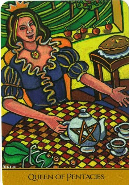 Saturn Celeste Posted January 28, 2018 Posted January 28, 2018 4. How does the Queen of Pentacles unwind after a difficult day? She cooks something tasteful, and will sit in her beautiful garden and relax. According to the Cook's Tarot you are spot on! I agree with everyone about this Queen.