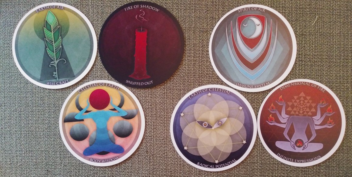 Rachelcat Posted April 29, 2024 Posted April 29, 2024 @fire cat pickles, Thanks for leading us past and present! We all really appreciate it! @sweeneyish, good to see you here! For me, this week will be Wild Harmonic Divination Deck by Gabe Marihugh. I have the indie version dated 2016. It is now published by Schiffer under the name Wild Harmonic Oracle. This is a repeat as a deck of the week, but I’m coming back to it because Gabe held a free Zoom class on the deck on Sunday. The class was a bit too woo for me, but I'm still willing to give the deck a try. It’s a round deck kind of based on chakras. It consists of 8 realms or chakras combined with an “of” with keywords. See attached table list. This version gives an “inquiry” for each card on extra cards. The published deck looks like it has a more substantial booklet. I quite like the art. Interview time! What is your most important characteristic? Celestial of Earth, Body Wisdom The deck helps connect civilization’s understanding to my body and my lived experience. What is your strength? Fire of Shadow, Snuffed Out A strength of the deck is that it acknowledges negatives, absence. Including loss of will. Your weakness? Earth of Air, Wise Craft Maybe it focuses too much on acting and doing, less on psychological help. What can you teach me? Dimensional of Fire, Infinite Expressions It can teach me how to act on higher levels. How can I learn it? Earth of Celestial, Radical Potential Realize the potential. Higher levels are as real as the physical. What will be the outcome of our work together? Spirit of Air, Immune System The deck will help me protect myself? Not sure this is going to work. Things are seeming a bit too nebulous for me. I’ll keep working on it! Wild Harmonic Divination Deck.pdf