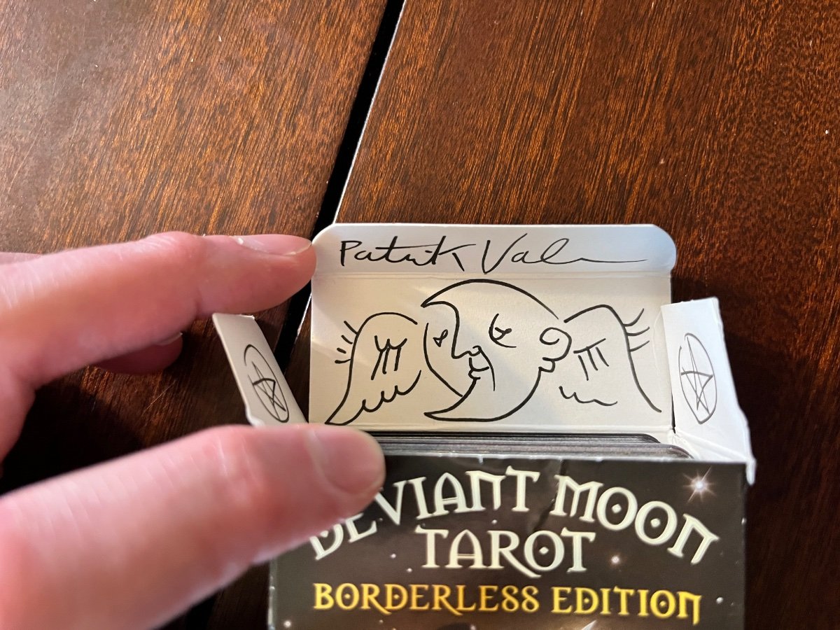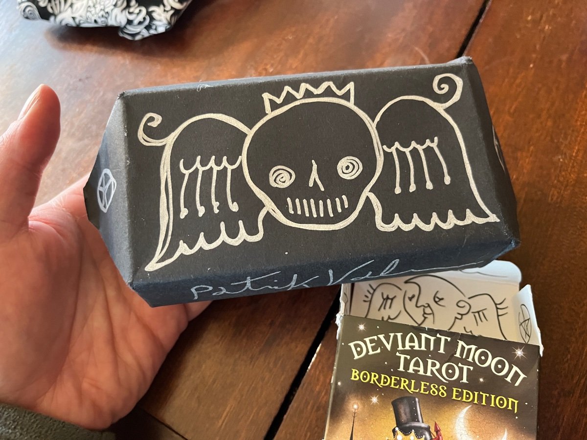 sweeneyish Posted April 29, 2024 Posted April 29, 2024 Thanks @fire cat pickles - very nice to see you! My reading for today - supplementing Mildred's Secret Oracle with Deviant Moon. Generally, I find I'm not very apt at combining decks, and that is probably true in this reading. I may just alternate the decks one by one for the rest of the week, but I can judge at the end of the day if any of this reading comes to fruition. I asked the Secret Oracle "What Will I Encounter Today?", and after reading that, asked the Deviant Moon for clarification on the reading with single card. Here's what it looked like in the end: Chalice: Celebration, Abundance, Dreams, Aspirations. Blood: Life. Vitality. Sacrifice. Heritage. Ancestry. Candle: Life. Enlightenment. Hope For the initial three cards, I read this as there being a celebration today, in particular, a celebration of life, especially considering both "Blood" and "Candle" can have this meaning of life. It may also read that the celebration today will require some sacrifice and some pain. I find this is true of most successes in life. If I read it that way - a sacrifice opens up the door to celebration, leading to further enjoyment of life and enlightenment. For the Deviant Moon draw, I drew the Two of Wands. In this particular deck, the Two of Wands shows hard work powered by unification of forces and creativity. This particular character is a farmer working in a field - a hard job that certainly requires sacrifice. So this might support my second reading of the three cards above. I have two big areas that require sacrifice in my life right now - my practice as a Buddhist, and, perhaps in complete juxtaposition, my brazilian jiu jitsu practice. As a Buddhist, one aim is realizing selflessness, and the destruction of ego, which helps one to find the abundance of life available in helping others. This could support the reading, although that's pretty intense work for one day! I have a competition this coming week for jiu jitsu, and a practice tonight. It is painful, hard work, and I literally have my own blood stained on my belt, so perhaps this points to the hard work and sacrifice required physically to practice. Finally, a little bonus sharing - Patrick Valenza has a package available where you can purchase the Deviant Moon and he wraps it in paper that he hand draws a custom design on. It's pretty cool.