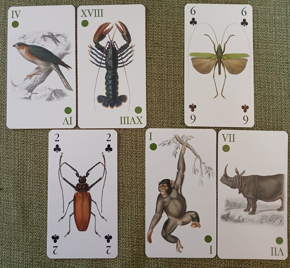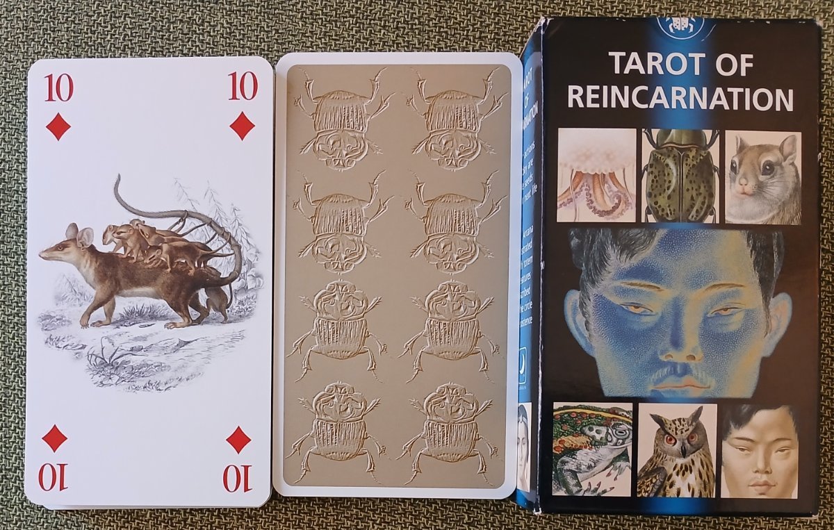 Rachelcat Posted September 9, 2024 Posted September 9, 2024 Hi crew! I’m a little late, but here! Thanks @fire cat pickles! Hey, @Bodhiseed, great pairing! This week for me will be Tarot of Reincarnation, an older Lo Scarabeo deck. (LWB says copyright 2007. Man, I’m old.) It belongs to a very exclusive category of my decks, animal tarots with one species per card. I tried to collect them and had many, including the Ark Tarot that @Natural Mystic Guide has been using, but I then narrowed down to only this one and Animal Wisdom Tarot, a Cico Books deck now republished as Spirit Animal Tarot. As you see, it has natural history Audubon-style illustrations (I guess that’s what you’d call it) and French suits, so it could easily be used for game play. But I’m going use it for reading! It doesn’t force the reincarnation theme (it’s basically just animals) except that it has two fools: a human male (0) and an adorned human female (XXII). The backs appropriately feature scarabs. What may have stopped me from reading with it so long is that the entire clubs (wands) suit is bugs! So we’ll see how I do with that. I’ll check the LWB for species if I can’t figure it out (like for the bugs) and probably try the reincarnation-themed spreads. In the meantime, on to the interview! Ok, this deck seems to have a sense of humor. I definitely shuffled and ended up with only majors and clubs! What is your most important characteristic? 2 Clubs, beetle (Seems like a lot of the clubs are beetles, but that’s what the booklet says . . .) Obviously meta, it’s most important characteristic is there are too many bugs! And/or it doesn’t mess around, it’s full of energy. What is your strength? XVIII (Moon), lobster Meta again, it’s very good at matching animals, at least for the majors. And/or even though it’s very theme-y and pretty minimalist, it can spark intuition and speak on hidden and esoteric things. Your weakness? IV (Emperor), hawk It’s far off the beaten path. It doesn’t bow to tarot authorities, or tell us how to read either. What can you teach me? VII (Chariot), rhinoceros They’re huge but can move fast when they want to. The deck can take me on the next steps of my pip reading journey. How can I learn it? I (Magician), chimpanzee Chimp definitely works for Magician. Clever and can be a trickster. I can take control and make my own meaning, and be clever about it! What will be the outcome of our work together? 6 Clubs, locust Is that really what a locust looks like? I guess some kind of locust. They can take over and conquer entire farms and areas if the farmers aren’t careful. I will master this deck and brag about it!