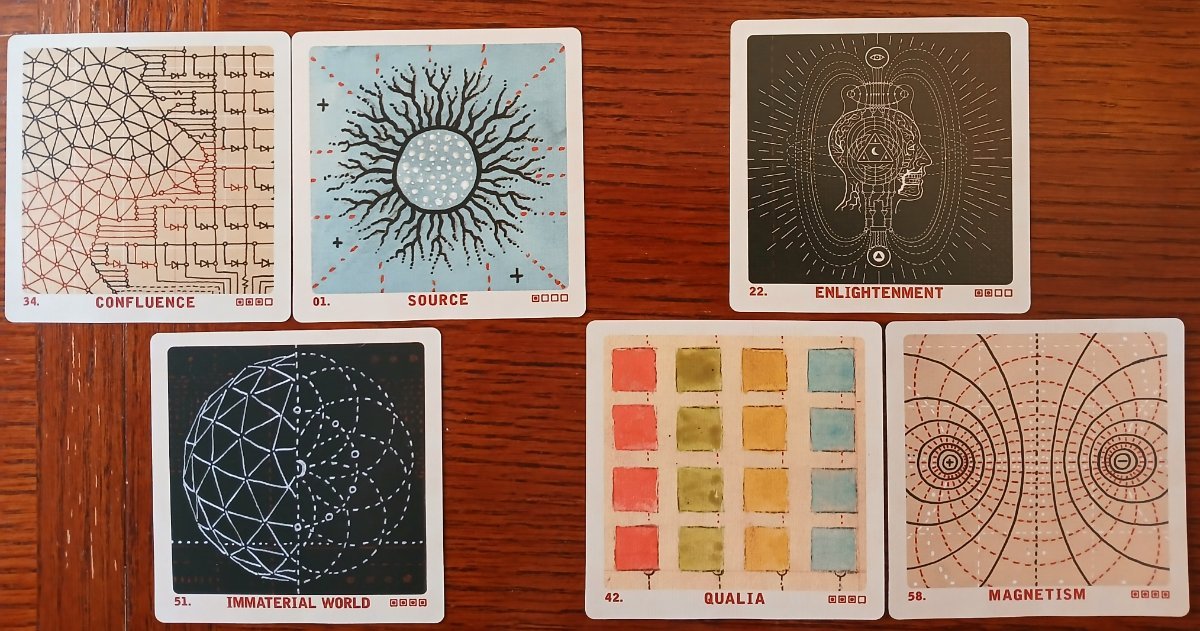 Rachelcat Posted February 24, 2025 Posted February 24, 2025 Hi, everyone! This week will be System Oracle: Forecast and Enlighten. It looked intriguing online, so I snapped it up. I was hoping for something a little more sciencey, or systemy!, but it turns out it’s more new agey. But it’s still interesting, and I’m willing to give it a good try. It’s a 60-card square deck with more or less abstract illustrations of metaphysical concepts. Its four categories are Cosmology, Enlightenment, Interconnectivity, and Manifestation. This week I’m also going to begin a year of using the Seasons of the Witch decks as prompt cards for each day’s readings. Because most celebrations of holidays start before the day itself, I made the schedule with each season starting about 22 days before the astrological date. So on Wednesday I’ll start with a card a day from Seasons of the Witch Ostara Oracle (last published, first of the astrological year). The vernal equinox is getting closer! In the meantime, wash, shuffle, and interview System Oracle. I’m interested to see what it has to say! What is your most important characteristic? Immaterial World Based on book: It helps integrate understanding of the material and immaterial worlds. What is your strength? Source The deck calls out deep philosophical questions, like where did it all come from. Your weakness? Confluence It’s not really good at combining concepts into one big concept or theory of everything. What can you teach me? Magnetism The deck can teach me about attraction and repulsion. When science was first understanding magnetism, everything metaphysical was suddenly based on magnetism. Now that scientists are trying to understand quantum mechanics, everything metaphysical is now “obviously” quantum in nature. How can I learn it? Qualia Qualia means subjective sensory experience, what our senses pick up that no one else can experience quite the same way. I can learn from this deck by using it and understanding it in my own way. And by experiencing it in a sensory way, through the artwork. This is the sample card that made me think it was more sciencey. I thought it would be about wavelengths determining color of light. What will be the outcome of our work together? Enlightenment Really. Wow. The interesting thing is this isn’t the last card, so probably not considered the final goal. It’s in the middle of the second category Enlightenment. It’s about experiencing the world and oneself directly without mediation of thoughts or feelings. Which is a strange outcome for a deck of cards, which are basically FOR mediation. Hmmm. The illustration makes me think it’s about receiving information from all directions, not just below and above. Well, we’ll see! I’ll keep trying! Seasons of the Witch Dates.pdf