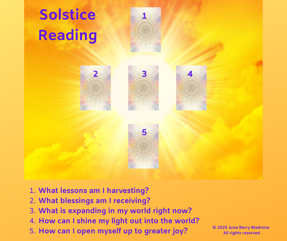 Natural Mystic Guide Posted June 10, 2025 Posted June 10, 2025 Welcome to your New World! The Solstice is a powerful time for transformation whether you are moving into light or dark. Shall we pause and honor this in between time as we shift from one cycle to the next. This reading can be part of honoring this marker of change. What lessons can we harvest? What bounty can we celebrate? What can we release? What do we wish to call in?