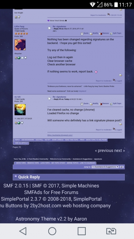 I'm not sure how to post a screen shot but the above is everything in my post except my avatar. If there are in links in the posts in this thread I'm not seeing them.