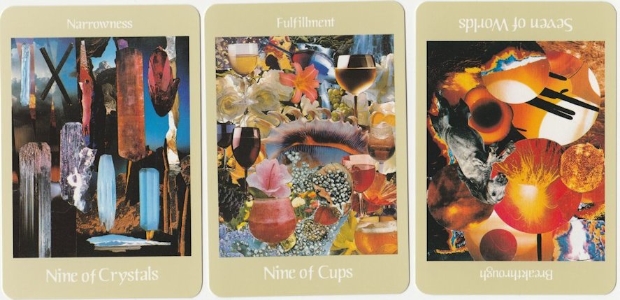 Trogon Posted July 18, 2017 Posted July 18, 2017 I decided to finally do a New Deck reading with my Voyager Tarot. I have this deck due to someone on AT giving me the heads-up that it was available on E-Bay for a reasonable price - I wish I could remember who you were, but thanks (I had deleted all my PM's and they're gone now anyway). Before I cover the reading, a bit about the deck; The cards are fairly large (5 1/2 x 3 3/4 inches). Card stock is excellent, thick, but still flexible. The finish is quite glossy and even feels a bit ... "sticky", like glossy photographs. The finish kind of meant that they didn't slide together really well, but if I didn't try to force it, holding the deck kind of loosely, it worked okay during shuffling. The images are photo-collage style art, very colorful and rather busy-appearing. But surprisingly, when I did the reading, the interpretations flowed quite easily. The Voyager Tarot has a very gentle feel to it, like it's got an almost Sun-card outlook, but not to the point of being unrealistic. There is still a sense that it will deal with the unpleasant facets of life as needed. So, XVI is still The Tower, and XV is "Devil's Play", which carries some dark connotations. But the 8 of Crystals (Swords) has the keyword "Synthesis" and doesn't directly carry that self-imposed trapped feeling. Any way ... my New Deck reading for the Voyager Tarot; I noted; "Wands heat the water of the 3 of cups, but lose a bit of energy doing so." 1) What will you teach me? 4 of Wands: (Keyword: Aspiration) To reach beyond what I've already learned. Increasing my abilities and my "passion" for Tarot. Moving me ahead on my chosen esoteric path. 2) What do you need from me? 3 of Cups: (K: Love) Love for the Tarot, love for myself and love for this deck. A strong general feeling in this card of "love", indicating a wider scope. 3) What will our relationship be like? 8 of Wands-rx: (K: Harmony) Much like good jazz music does not follow "standard" musical theory, this deck will not, necessarily, follow a typical, or "standard" Tarot approach. This is the deck to use when new ideas or perspectives are needed. This deck will lead me in new directions and give me (or clients) new choices and different ideas to ponder and learn from. One thing that surprised me was that this reading flowed quite easily, in spite of how different the images are. I kind of started trying to "logically" fit the last card in, then just opened up ... the interpretation just popped into my head. So, yeah, the Voyager Tarot is going to be a very cool deck to work with.