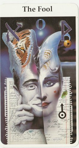 Trogon Posted July 23, 2017 Posted July 23, 2017 Röhrig Tarot - The Fool I decided, since we're doing this, that it was a good time for me to run through the Röhrig Tarot again - haven't used it since October. The Röhrig Tarot is Thoth based, but the artwork and images are pretty different. The art is much more detailed, but still has a lot of symbolism in it. In this card our Fool appears to be more mature, but the dual nature (male/female, innocent/foolish, young/old) that gives us the card's meaning. He can go on to be anything he wants. The Tiger of the Thoth and Sobek from other decks are both there, as is the jester's hat. But these symbols are portrayed as being a part of the Fool's personality, they are a part of them. From the book; The Röhrig Tarot depicts the Fool as a figure with two faces. The left side of his face embodies the masculine aspect: smiling, knowing and unconcerned, he represents chaos, where there is ample room for everything with a huge, disordered oneness. A crocodile, caught in the act of swallowing a live tiger, forms the cap that crowns the male half of the Fool's face. Tiger and crocodile are holy beasts but, at the same time, they also symbolize animalistic tendencies. The other half of the Fools face shows a beautiful, also smiling and knowing woman who represents wisdom and the principle of order. Her cap is an artful composition of delicate feathers. The Fool is both she and he, chaos and wisdom, beginning and end.