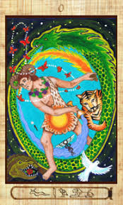Bookworm Posted July 17, 2017 Posted July 17, 2017 Rosetta Papyrus There is too much going on in this Fool card for me to adequately describe, but I’ll give it a go, since this is my DOTW deck. Since this, like the Tabula Mundi, was also created by M.M. Meleen, there are many similarities to the card above. Unfortunately, I really don’t know all that much about Tarot symbolism. An added complication is that this deck is based on the Thoth, which I am also unfamiliar with. Fortunately, I also have this deck as an app, which includes the very informative Book of Seshet. So, as the book explains, the Fool here is an androgynous Dionysus figure, being chased out into the air by a Thothian tiger. He’s headed right for a crocodile (Sebek, the Devourer, who ends and restarts the cycle which we are at the beginning of here), but he’s oblivious to the danger. Surrounding him is an Ouroborous, also referencing beginnings and endings. With one hand he pours water, with the other he pulls a flaming pinecone; combining them creates air (symbolized by the dove and the butterflies). “The Fool is that point at which all things in the universe are created from the void.” Also pictured on the card are a sperm and an egg. He can represent “the seed of procreation,” as well as new beginnings and risk taking. Sorry I couldn't figure out how to paste the pix into the text. I'll try to figure that out before my next post.