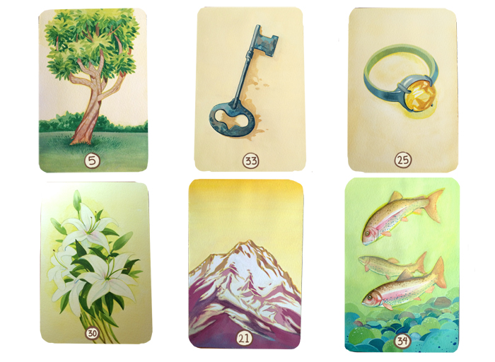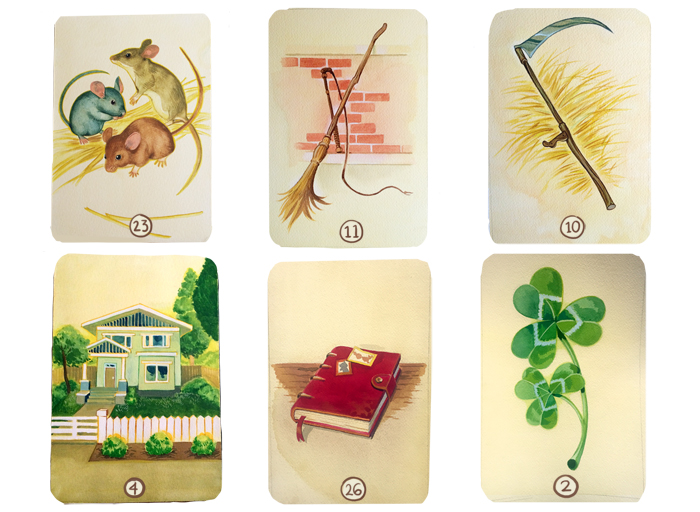 Birdie Posted July 5, 2018 Posted July 5, 2018 I've been working on this deck on and off for years. My work-work keeps getting in the way but I finally have some time to really finish this project. You can see the cards I've painted and complied (with digital mock-up numbers and rounded corners) below. The moon card and heart card are finished but I am re-painting them. After some absence, I've looked at them and I'm not very pleased with how they came out. So, try try again, as they say. Feedback would be appreciated. Do you like the simple borderless design? No titles or card inserts, just numbers? Are the colors ok? I planned on making each card vary slightly in background color, from more muted yellow/brown to more vibrant yellow to green. I wanted that variation to reflect the hand-made nature of the cards. They are all painted in gouache on cold press paper. Also, are they clear? Do you think you could read with these cards? Thank you so much for taking the time to look and give feedback!