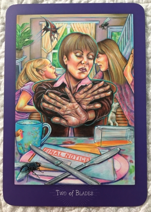 Madame Squee Posted August 10, 2018 Posted August 10, 2018 Subtitle: What's the Point? Keywords: Indecision/decision, denial, choice, thwart, refuse, ignore, avoid, block, stuck, blinkered. There is so much to discuss in this card...