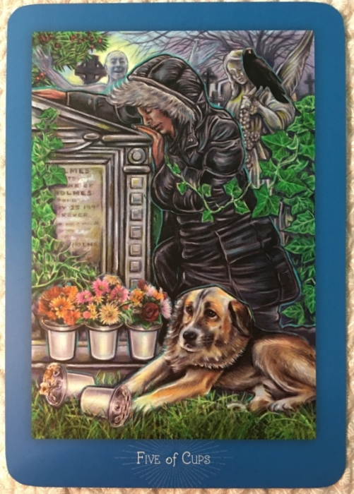 Madame Squee Posted August 14, 2018 Author Posted August 14, 2018 Thoughtful[/member], I love your analysis of this card. You've covered so many points so beautifully. I'm particularly amazed about the appearance of that spirit figure in the background. He never registered with me. How bizarre! Thanks to you, I see him now. When I looked into the background of this card, my eyes skipped over to the raven. Then, my mind turned towards a line from "The Raven": "Quoth the Raven, Nevermore.” In that poem, Edgar Allen Poe uses a raven that speaks the word, "Nevermore", in order to explore the pathology of an inability to recover from lost love -- a perfect subject for the Five of Cups! The entire poem is reprinted here: https://aig.alumni.virginia.edu/raven/poe-resources/the-raven/ It is wonderful to read and study the language in this poem, but I've read that Poe intended for "The Raven" to be read aloud... https://news.virginia.edu/content/why-did-poe-write-quoth-raven-nevermore (I love that the bird in the card sits on a statue, as does Poe's raven.) I glanced at the description of Five of Cups in the companion book but didn't find any reference to "Nevermore". Even so, I see a connection. "The Raven" demonstrates the peril of falling into despair over love lost. I believe a person in that condition hears what reinforces his or her inconsolable state of mind.