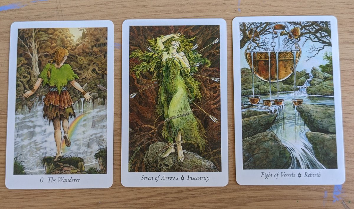 Wanderer Posted April 18, 2023 Author Posted April 18, 2023 On 4/17/2023 at 6:04 PM, debs said: Finally got round to doing this, now that the schools are back after Easter holidays. 1. What can the cards do for me? The wanderer. They can set me on a path into the wild wood, point me in the right direction. But as with any deck, they are only the tool I have to do the rest. 2. What can the cards not do for me? Sevens of arrows- insecurity. They can't sugar coat things that I need to know. The cards will tell things as they are and sometimes that won't feel so comfortable. 3. What do they know? Eight of vessels-rebirth. Again as with all decks, they know it all, overflowing with universal knowledge. It's abundant and available for all. As well as individually I also read this as a whole, when you look at the 3 cards in a row you see the wanderer starting out on their journey into the woods, the green women in the woods pinned and struggling by arrows and the overflowing vessels in the stream at the end. I think my journey with the wild wood will be one that will change how I currently see a lot of things, but ultimately worthwhile and rewarding. Nice! Very interesting (and to some extent unexpected) cards, but the same meaning coming through once more. It's interesting how the message is clear, but reading the grammar and context of each question literally, it's harder to piece together... for example, "What can the cards not do for me? - Insecurity" could be read as 'they can't make you insecure'... and yet the meaning you put on it feels much more intuitively right. It's more as if they can't protect you from insecurity... and if that's the way your mind intuits the message, then that's the message you're meant to hear. And Rebirth is an odd one as well... but the idea that they understand the secrets that lead to self-transformation is perfectly consistent. The overall pattern of the three cards is really striking, I agree - that's what really stands out to me here. It's a very literal, visceral depiction. I'm guessing you're quite an intuitive reader, overall, rather than someone who sticks rigidly to book meanings?