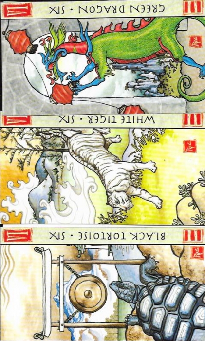 AJ-ish/Sharyn Posted April 18, 2018 Posted April 18, 2018 sixes from the feng shui deck by connley, I think the turtle is wands and sixes from the True Love deck, haven't got a clue to suit I am always on the hunt for moon cards