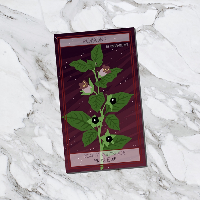 RavenOfSummer Posted November 2, 2018 Posted November 2, 2018 I came across a couple of forthcoming decks while the forum was down and was so antsy to post them here! This one is from Cracked Amethyst, the maker of the Amethyst Oracle and I believe also the Idiosyncradeck. What fascinates me is that this is a 120 card deck, with 22 majors, 80 minors, and 16 courts, as well as 2 bonus cards. Why so many cards? Well, it looks like there are eight suits of minors! The suits appear to be Flowers, Crops, Cacti, Mushrooms, Medicinal, Herbs, Spices, and Poisons. Usually I would say this kind of very modern art style isn't for me, but this deck is so fascinating that I'm going to continue to keep an eye on it. (Also I actually do really love that Deadly Nightshade card.)They say it's coming 2019.