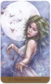 GreenFaerie Posted August 5, 2017 Posted August 5, 2017 Like the VFT, I enjoy the fact that this Priestess is out in the wild. No indoor holy temples for her; nature is her temple. Instead of a crystal ball, we have the Moon, that guider of dreams, intuition, and the subconscious. The luna moths are also beings of the night and the realm of dreams. This priestess might speak to you or she might not; she might just lead you in a dance under the moon, and help you realize that you already know the answer. (Just a side note: Like the VFT, I am always impressed with the guidebook for the TotHR. The prose is lovely. I've paraphrased some of the ideas here, although the note about outdoor temples is all mine.)