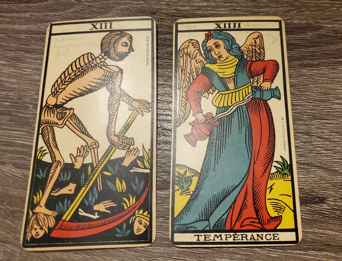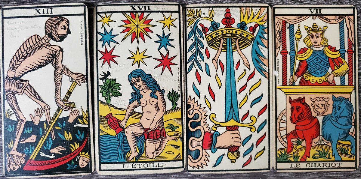 bookshop Posted January 14, 2020 Posted January 14, 2020 @rylla Katrinka beat me to it! The Ancien TdM is the label that was eventually permanently affixed to the specific tarot deck that was drawn by Paul Marteau and first published in 1930. https://www.tarotforum.net/showthread.php?t=57491 @katrinka ahh thank you! I love the penciled-in notes too, only some of them i can't read because they're too light/worn and my french is rusty. I actually had never heard of it until I noticed @archimedea's profile icon and then went on a hunt to figure out what deck it was from, and then i became completely obsessed with finding an affordable older variant with the gorgeous lighter blue colors. I love it so muuuuuuch ❤️
