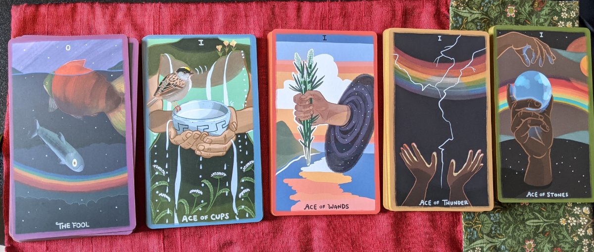 ilweran Posted February 8, 2021 Posted February 8, 2021 (edited) I've had a couple of decks I should add on here, I had the Sacred Heart Sisters oracle for Christmas and it's lovely. But today The Gentle Tarot arrived, will add pics later but couldn't wait to post about it. It's stunning, so beautiful. I love the different coloured borders, the more matt gilding is so much more fitting for the deck than shiny gold would have been. I might just have to take a couple of photos now... Here you go! Here's the lovely gilding - And the Fool and Aces - I bought it because it looked like a deck I could use, I'm really hoping that turns out to be the case, The courts are renamed and are all animals, which I'm hoping will be ok as I'm used to that with the Greenwood, thunder instead of swords (arrows for the Greenwood) is interesting. Really want to have a go straight away, but I'm in the middle of the Little Red Tarot tarot course with the Greenwood and todays daily draw was the 9 of Arrows - dedication - and that might be a message for me and a reminder not to go running off to other decks until I've finished what I've started. 😅 I was going to do the whole course again with the Witches Wisdom, I'm wondering if I could do it with two decks at once... Edited February 8, 2021 by ilweran