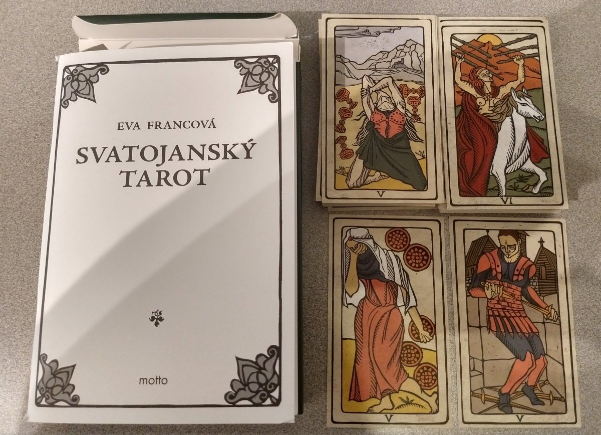 gregory Posted September 16, 2021 Posted September 16, 2021 4 hours ago, Niobium said: My Svatojansky Tarot arrived and wow I'm in love. Can't wait to get some time to work with it. https://www.kosmas.cz/knihy/210306/svatojansky-tarot/ The art on the illustrated minors really clicks for me, as does the sort of antique color palette. I do wish the corners were rounded; will need to get out my trimmer. The stock is a sort of heavy cardstock, should hold up well overall. I don't care for the box--the cards float somewhat freely--so into a bag it goes. A photo someone else took, as I've not had a chance to take some pics of mine: Before I do something I will regret - that link is the DECK ? The translation in Chrome says "book".....