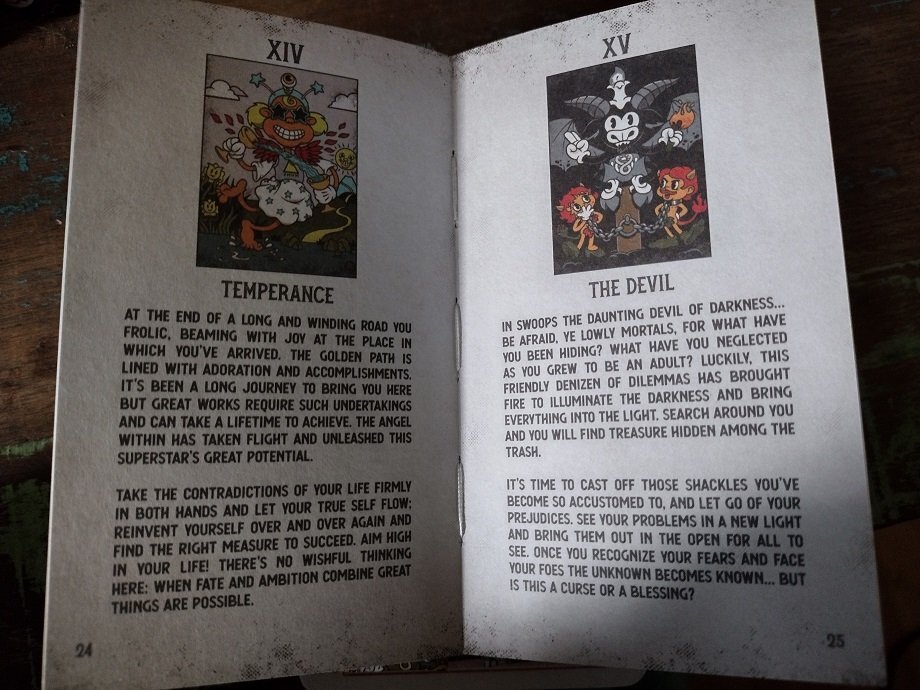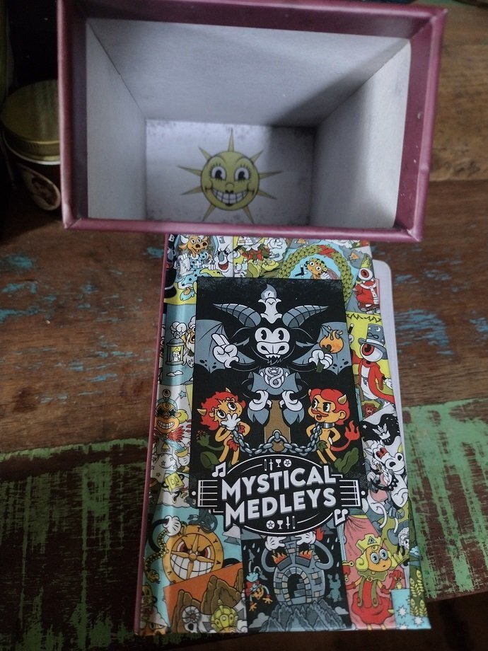 stephanelli Posted November 27, 2021 Posted November 27, 2021 4 hours ago, katrinka said: Today another forgotten deck preordered months ago landed on the porch. (And I was just talking about wonky decks here. "Talk about the devil and there he is.") This one is called Mystical Medleys. It's designed to look like vintage cartoons. I love 1930's stuff. There was the risk of getting stuck with a kiddie deck, but I took that chance since 1930's cartoons were actually not purely kiddie stuff, at least until the Hays Code came along and "saved" society from such travesties as Betty Boop's garter. The box is quite heavy and substantial. There's an outer box with a firm magnetic closure on the bottom, and those half moon "grab holes": And there's an inner box, and a little hardcover guidebook. They really went all out with the packaging. (And even with all that, it's inexpensive.) The guidebook is really bad, though. It's ALL filler: jumped-up card descriptions and unsolicited generic advice. Oh well. It keeps the cards from rattling around in the box. See all those black dots? They're on the cards, too. They don't bother me, but I really don't see the point. They're obviously meant to mimic newspaper print. But if they were going for a newspaper comic effect, they should have colored in the images with dots instead of solid colors: https://legionofandy.com/2016/08/26/ben-day-dots-part-8-1930s-to-1950s-the-golden-age-of-comics/ If, OTOH, they were mimicking animated cartoons of the era, they should have left the dots off and used black and white images. Color film existed in the Pre Code era, but it was rarely used. These cards would have been sublime in black and white. So there's an overwhelmingly inauthentic feel to this deck. But it does have a saving grace: irreverence! It follows RWS closely. They even got the snail on the 9 of Pents. Some of the images seem to be taken from the same template. Note the little couples on these: All the Aces feature the cloud that the hand normally emerges from. It's always a gray storm cloud, no matter the suit. And, since it's a purely silly-a*s deck, you get not one squirrel card, but two: The stock is stiff and sturdy. But it has no slip whatsoever, and the cards stick together. Mine have already had a rendezvous with the fanning powder, and they're OK now. Is it a great art deck? No. (I wish Bobby London was into Tarot, he's a wizard at vintage-style stuff. So is Robert Crumb.) A great reading deck? Of course not. But it looks like it could be fun at parties. 😁 I'm totally in love with the tree stump in the Ace of Swords! Such a weird but oddly appealing deck! I hope you have some fun times with it!