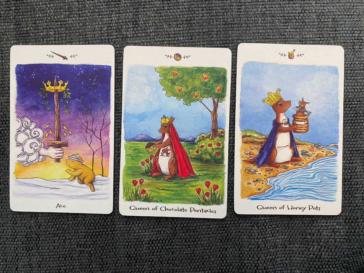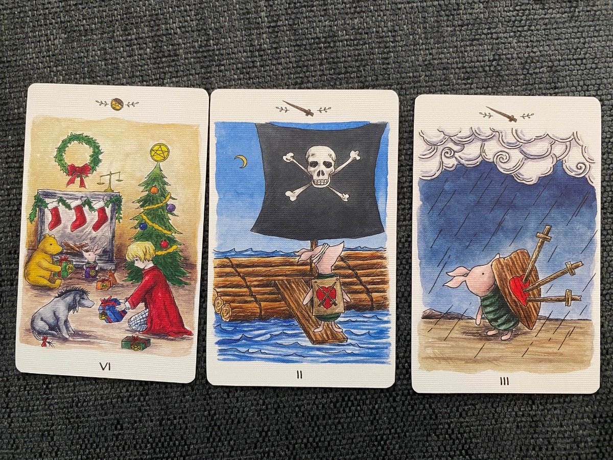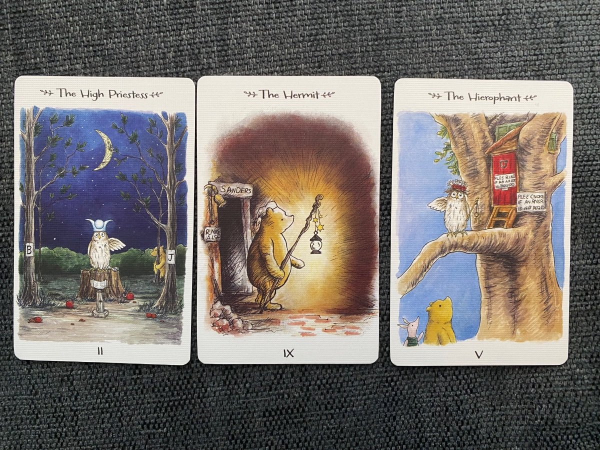 Raggydoll Posted October 3, 2024 Author Posted October 3, 2024 Today I received one of the cutest tarot decks I’ve ever seen: The Wisdom of Pooh tarot! This version is the mini that comes in a tin 😍 I love the size and the packaging. The cardstock feels very nice too, and the back design is really pretty. It doesn’t come with a guidebook but it has extra cards with printed keywords, and that’s fine for me. The deck contains four extra majors. One of them is an alternative Fool card. The artwork is SO lovely and my first impression is that this deck will be quite readable too. That’s important to me, I don’t just want cute novelty decks, I need them to actually work in readings. Piglet is such a favorite of mine 😁 I think it’s adorable that the suits are renamed. I particularly like the Queen of Honey Pots and the Queen of Chocolate Pentacles 🤣 it will be really interesting to see how well this deck reads!