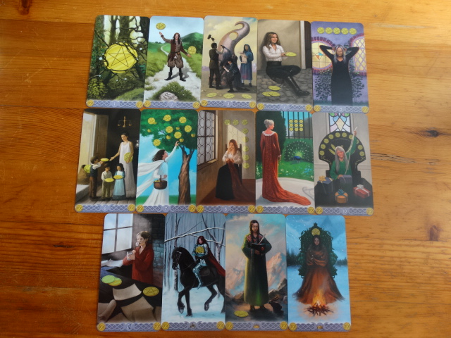 AJ-ish/Sharyn Posted June 11, 2019 Posted June 11, 2019 (edited) two posts here on the Children of Litha 1st edition, but I just received the 2nd edition so thought I'd remark on it. The basic differences I 'think' are my edition doesn't have the two extra cards or gilding. It did come with a sticker. I've owned a zillion decks and this is the thickest, even thicker than a minchie or etteilla! It doesn't fit in the deck holder (napkin holder) I've used for 20+ years, a first. The cards are like the Brady, a bit of a greasy feel, but not in a bad way, just different. Litha is the midsummer sabbat, but the deck has seasons, at least there is snow in the swords suit. I can't find that 'children of litha' is a thing, so think the idea is unique to this deck. The adults in the majors are part human. ish. there are some odd things poking off them here or there. the minors are non-human and lovely. The courts are humans with familiars, evocative. I think this will be a good deck for making us think beyond the RWS box of keywords. I've included some favorite cards, with the exception of the Emperor, I'm not quite getting him and his sword. But I always have issues with an Emperor so it is all good. I've included the Sun card for our Little Fang...that 8 of Coins, I just want to hug it to my chest. Yes I'm stubborn. But I'm a burro and many civilizations have been built on my back, so there. The box is sturdy magnetic closure, on brief examination the book is well laid out and printed. I asked for #27 and had forgotten all about it...and there it is signed and numbered #27 😉 I love small pleasures, and am well pleased with my investment. Edited June 11, 2019 by AJ-ish/Sharyn