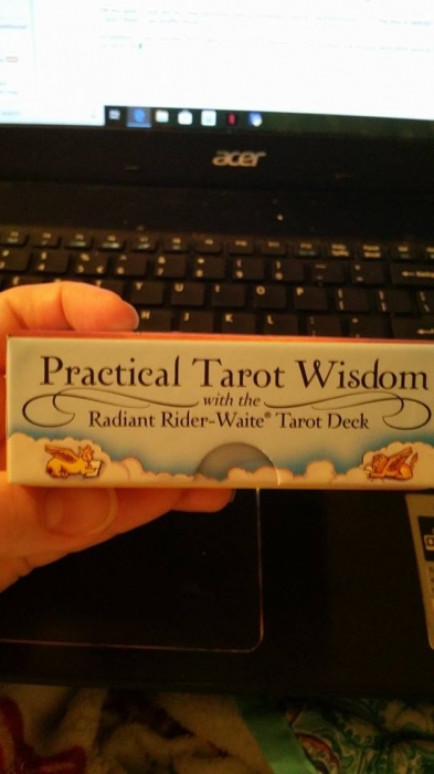 Emilija Posted March 8, 2019 Posted March 8, 2019 Oh my gosh, I just got my new Ancestral Path in yesterday, and it's HUUUUUUGE! O:-) The box is almost the size of my hand. I've shown it in the picture to show how big they are. I don't think I can shuffle these! In addition, I got a smaller deck called Practical Tarot Wisdom. It has Radiant RW images with little advice/affirmation snippets on each card.