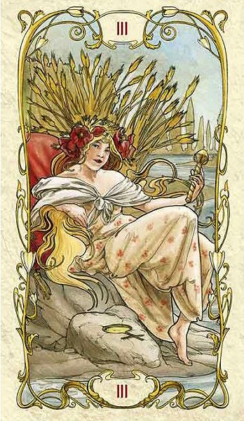 GreenFaerie Posted August 21, 2017 Posted August 21, 2017 The Empress of the Tarot Mucha is probably the most "typical" RWS Empress I have, and I actually like her because the whole image reminds me of Demeter, the Greek goddess of agriculture, harvest, fertility of the earth, and sacred law. Demeter is also a powerful mother figure; she withheld the rains and let the harvests die when Hades abducted her daughter to the Underworld. She did not restore the earth until her daughter was returned to her. Mothers nurture, yes (whether they are nurturing children or art or buildings or some other contribution to the world), but they can also be agents of death when those children are threatened. The Empress has a dark side, and this particular card helps me remember that.