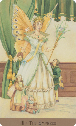 GreenFaerie Posted August 5, 2017 Posted August 5, 2017 I've been trying to catch up with the threads, and here I am doing the first reply for this one! That's . . . kind of exciting and stressful at the same time. :) The Empress in the VFT is surrounded by her children and is all about family, which is totally appropriate for the Victorians. It's no accident that this fairy queen mother is wearing a crown and carrying a scepter; Victoria made a reign out of being the "mother of England." Victorian women were supposed to be completely devoted to families, children, and nurturing, creating a loving home space for the citizens of the nation to be educated in and (eventually) to retreat to. Notice that the fairy children cling to her full skirts; if you really want to get into historical iconography, you could argue that this is analagous to Victoria's skirts encompassing and protecting the whole of the British Empire. (Sorry. This is academic me blathering on; while my focus is the U. S., I work in the second half of the Victorian period, so I'm aware of a lot of what is going on in Britain at the time.) While the idea of empire makes us all cringe a little bit (apartheid, anyone?), in this lovely picture it isn't an insult. Women ruled the empire of the home, and were queens of the family, and that nurturing quality, the ability to love, shape, and teach future citizens, is what gave them power. (It was also what gave them the ability to work in the public realm, under the guise of "social housekeeping.") This beautiful, intimidating, powerful faerie will protect and nurture her children at all costs, and their growth and maturation is her harvest. Realize that the children can also be metaphorical - whatever your passion is, whatever you bring into the world and nurture, the Empress is there to aid you. Finally, a note from the guidebook: "The scepter she carries is a magic wand that bestows abundant blessings of sustaining love. She knows her duty and accepts it graciously and without false modesty. The Empress is not reluctant to wield power, but it is power wielded with generosity and devotion to her family and her subjects."