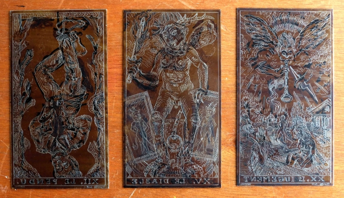 Dirk C Posted January 18, 2019 Author Posted January 18, 2019 Thank you for all your kind response! The images are the worked zinc plates (that's why the text is mirrored). I haven't put them in acid yet, because I want to be able to make changes until I've got the entire major acana done. Also there are other technical reasons making it wiser to do them all at once. So I can't show any prints as of yet. As of now I've got: Emperor, Lover, Chariot, Hanged man, Devil, Judgement. (Some favorites I'll keep for last ;) ).