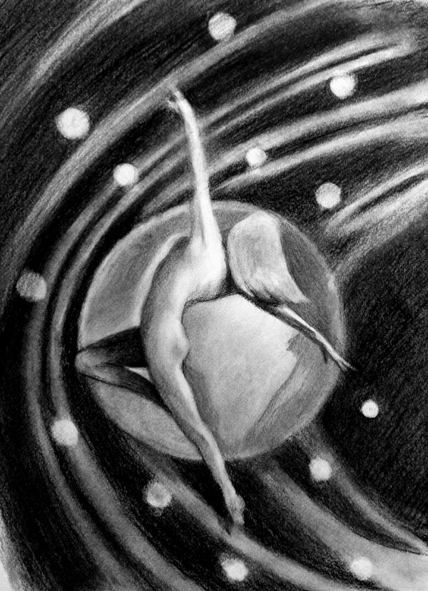 FindYourSovereignty Posted February 27, 2020 Posted February 27, 2020 54 minutes ago, Day Soleil said: My pieces are too large to fit on my scanner, so I photograph them. But I need to do this on a more consistent basis on good, overcast days with my 35mm camera. I've gotten kind of lazy with this lately and have been using my cell phone camera. Bad artist! 🙂 But I'm really liking the charcoal + graphite thing! As long as I can keep from messing them up - I am not used to working carefully with my hands, and usually blend with my fingers because I love getting touchy-feely with my art, haha. Very tricky to keep things neat with charcoal, as you know! Here's a sneak peek at my World card - about 70% finished - I still need to go in and deepen the darks in the background and define around the figure. The figure's a deliberate reference back to my Fool card, hopefully pointing to the endless cycle of the fabulous Journey... Oh, I like this one a lot. The movement is wonderful.