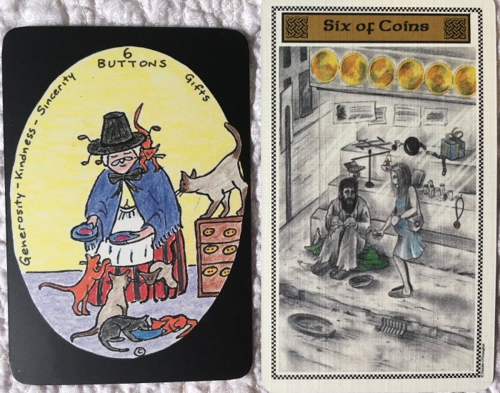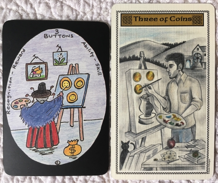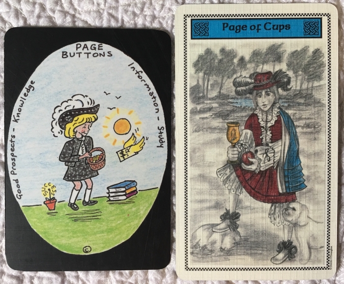 Madame Squee Posted February 14, 2019 Posted February 14, 2019 This is what I learned this week: Deirdre of the Sorrows reminds me of Granny Jones Australian Tarot. This realization took me by surprise, so I started thinking about their similarities... Both creators have used personal symbols in a clever way to convey meaning. The artwork feels homegrown in both, deeply connected to the place of its origin. Both decks could have used the same designer to create several of the costumes in the court cards. I don't know if my observations are worth anything, but I'm attaching examples of what I see. In the end, I think I just enjoy comparing things. :biggrin: