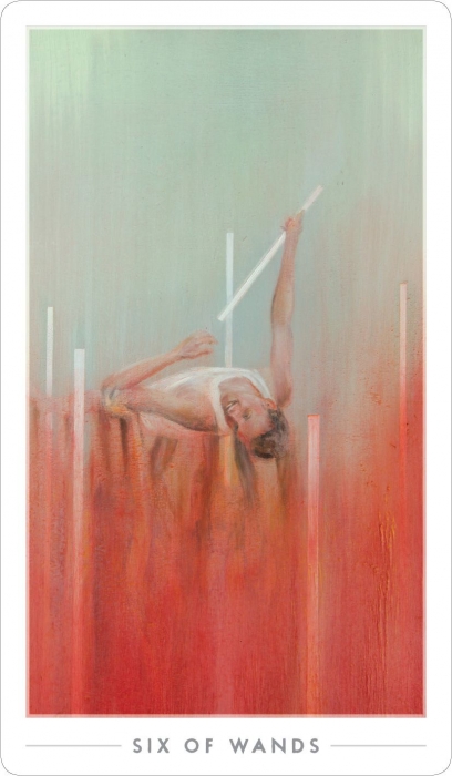 EricSpellman Posted September 25 Posted September 25 I understand that this might be a bit late for you to receive an answer, and you may not be around anymore. However, I really love this deck, and I thought that any response could be helpful to anyone else who might want to delve deeper into it with us. I see that Six of Wands in its traditional form, someone being celebrated. You can see that the person is being lifted up by a crowd, and the overall mood is happy as we see in the person's smile. The white batons and the red gradient might make the illustration look like someone in a high jump competition, being captured mid-jump before falling into the flames (which might seem negative, or battle-like); so this card has an added sense of competitiveness. I do take the red color more as a link to the wands' fire element than to a combative stance (like the seven of wands energy), but I understand the color can be distracting. The King of Wands, to me, is more like an allusion to a high jump athlete preparing to break his own record. It’s a person who has mastered the art of channeling their creative energy to achieve maximum impact, radiating the results of their clear and trusted vision to themselves and others. The fact that the “rays of light” partially obscure him evokes a sense of humility and selflessness from that energy.