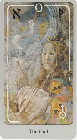 Trogon Posted September 16, 2017 Author Posted September 16, 2017 Haindl Tarot 0 – The Fool First Impressions: The Fool is, to me, one of the more important cards in a Tarot deck. Not necessarily one of my favorite cards, nor one that can make or break a deck for me. However I feel that, to a certain extent, it sets the tone for the rest of the deck. I think that is the case here. The more muted colors are used throughout the Haindl Tarot. The Fool has a more spiritual feel than in some other decks and it makes me think that this deck is going to be best used for matters of the Spirit and mind. One of the first things that strikes me is the Fool’s expression – he is not blissfully happy, as some deck depict him. For example, the Thoth shows him smiling and happy, and the RWS has him dancing in the sunshine. Haindl’s Fool is more thoughtful looking, if not downright somber. Not sad, but not blissful – perhaps just a blank expression, or one of curiosity. There are sleigh bells attached to his hood or cap and these, I initially feel, have a connection to happiness (music and dancing, for example). There is also a white swan behind him. With the swan comes the idea (to me anyway) of a certain “purity” of the soul and mind – indicating that the Fool knows nothing and has experienced nothing and so is the embodiment of the idea of a blank slate. He can be anything, do anything without fear. But everything, almost each breath, is a new experience for him, everything is exciting. Symbols: “Aleph” – 1st letter of the Hebrew alphabet; meaning “ox” or “bull” and representing active life energy. But Aleph is silent – when God announces himself to the Israelites, he says “I am the Lord, thy God” – “I am” in Hebrew is “anokhi” – silent Aleph symbolizes that knowledge of God can not be spoken in human terms. The Rune is “Wynn”, “W” – meaning “Joy”. The Fool is a child, rejoicing in life. Taking delight in every experience, “dancing through the challenges of the Trumps.” “The Rune also means to bind forces together, or to bind people into a community.” So Silent Aleph is the force that binds together the experiences of the Major Arcana – the experiences of life. Astrological sign – Uranus. “… emphasizes the unexpected, the joy of surprise which moves the Fool through the different steps of life, forever daring to move into the unknown.” Surprise and discovery. White Border – the element of Air, the Spirit. The Jester – The Fool himself. Outside of the Royal Court and able to see their folly and comment on them with impunity. “The Fool bears the number zero. This sets him before and apart from all the other cards. It also symbolizes that intuition of the sacred clowns, that we are not any of the things we think we are. Reality can never be pinned down to any specific explanation or philosophy. Therefore, it remains – nothing. Where the other Major cards, with their fixed places in the sequence one through twenty-one, represent particular states or stages of life, the Fool, zero, can become anything.” “The Fool symbolizes instinct and innocence, a sense that we contain within us something pure, something that reaches back before culture, before conditioning, before ego, even before personality. We think of ourselves as particular people … different from everyone else. The Fool, with his blank expression, reminds us that something lies below all those visible characteristics, a universal life energy, beyond thought, beyond individuality, shared by all life.” The Fool cannot look at himself, nor can we remain The Fool as we move through life. We carry The Fool within us as we move through the major arcane, but we continue to grow. The Wounded Swan – representing “The Fall”. The fall from perfection/purity of “paradise” to become physical beings. Also relates to grail mythology where Percival wounds a swan. The Fool points to the swan to remind us to heal the breach between ourselves and our animal nature. We must join with the animal within us, embrace our very nature before we can connect with the cosmos shown behind the swan. Meanings (from Haindl book): Upright: A situation where planning ahead is not possible or not desirable – the person needs to act intuitively. Possibly following a “foolish impulse” (maybe quitting a job or making a big move). Others may see the change as “foolish” or “crazy”. Going against what seems to be “wise” advice. A time in life where the person needs to act impulsively. Follow your feelings. Leap into new experiences – trust that things will work out. A time of surprise, wonder and excitement at life. Grab new opportunities. Reversed: Finding it hard to trust your own instincts. You may desire to do something, but doubt the value of it – especially if it might appear foolish. Fearing to step into the unknown. If other cards indicate: this may warn against taking a foolish step. My Interpretations: Upright: Along with my usual interpretations of this card (starting new things, spiritual journeys, joy of life, “marching to the beat of a different drummer”, etc …) I would add; A dawning awareness of one’s connectedness to things outside of one’s self. For example, connection to the Earth on a spiritual level. Or, in a more mundane setting – when you’re in a new group (job, club, etc) and you begin to feel accepted. You may be experiencing disillusionment with “religion”, seeing the spiritual and ecological damage to the Earth (swan’s wound), and so are seeking your own spiritual path, a new religion or becoming involved in ecological groups – though your actual beliefs and understanding are stil lacking direction and focus. The Fool’s expression makes me think of a sense of wonder or surprise, more than the joy seen on many other Fool cards. Reversed: A lack of spirituality. A feeling of being stuck in a rut – unable to move 