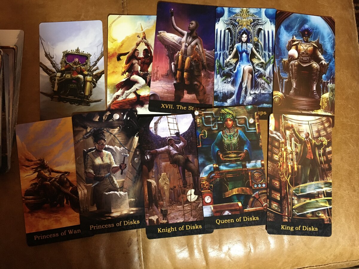 TarotHen Posted July 22, 2020 Posted July 22, 2020 Tarot of Brass and Steam. Not my favourite deck by any means because I much prefer individually illustrated pips and the numbered cards just have a desaturated version of the ace for each suit, but it does have some racial diversity. All the disk court cards for example are POC.