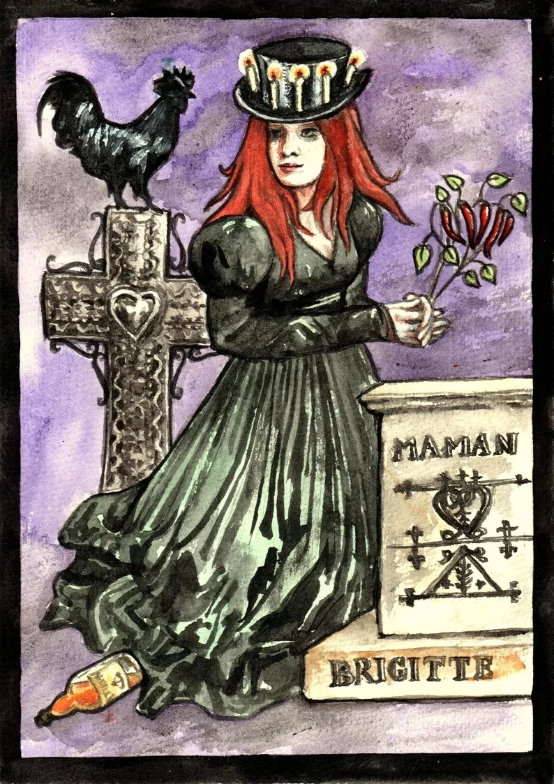 katrinka Posted January 20, 2022 Posted January 20, 2022 18 minutes ago, Decan said: Interesting, I didn’t see that and don’t know many things about voodoo, anyway from what I just read it would be better to don’t upset these spirits 😬 It's a syncretic religion. Enslaved Africans hid their gods under the guise of Catholic saints. They had to. Maman Brigitte does correspond to the Irish St. Brigid, from what I understand. This is St. Brigid: Not this: Here is a more proper depiction of Maman Brigitte. Like her consort Baron Samedi, she's skeletal. She is also African: So while it's not unheard of to depict the Loa as white, this was a cover. I doubt the people buying those prayer cards are in danger of being beaten or lynched. It's just more of that buffet-style new age religion that reimagines everything as whitewashed and pagan. You can make the jump from Maman Brigitte to St. Brigid. But when you take it all the way back to the Celtic Brighid (and imagine her all steampunky - ghaaa), it's not Maman any more.