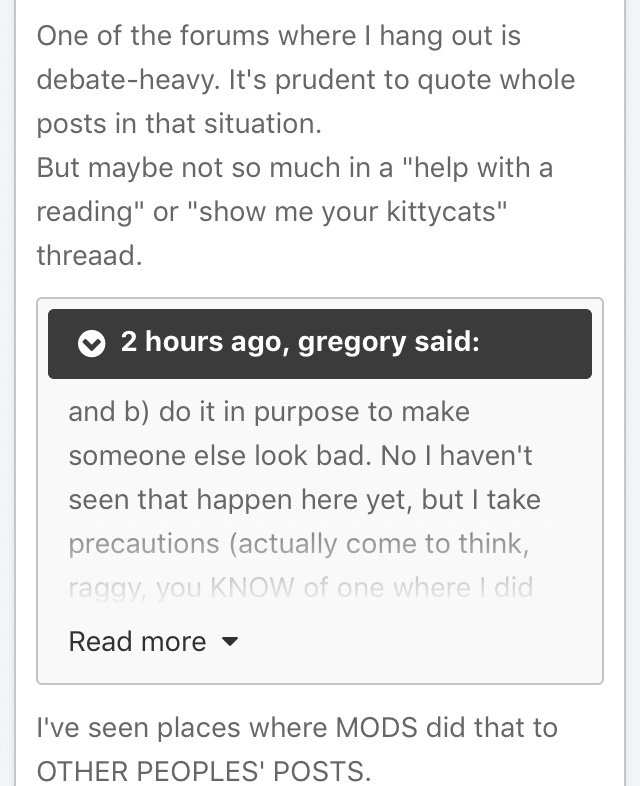 But maybe not so much in a "help with a reading" or "show me your kittycats" threaad.