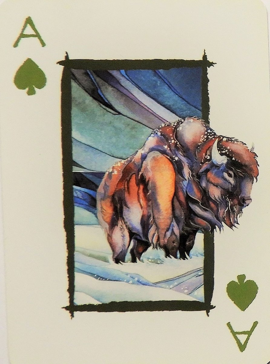 Mi-Shell Posted September 3, 2019 Posted September 3, 2019 Card of the day for Tuesday, September 3 Ace of Spades This card shows me a lonely lonesome Buffalo Bull standing in deep snow. In the background one sees deeply blue-grey and purple storm clouds, pregnant with more snow. The Buffalo's head and torso is already out of the frame of the picture = his mind and soul have gone to greener pastures. Is it, that the storm and hardship is past or is he already claimed by the Windigo = the voracious Winter Spirit of hunger and starvation? In the time of the rut he mightiest Buffalo bulls that fight and fight and fight of all the other contenders for the cows have not time to eat and replenish their strengths. They loose too many calories to survive the winter and their bodies feed the Wolves. But their genes are spread wide and come spring the calves will hop across the meadows ♥ In hard times the mind can escape the gnawing realities. Ace of Spades is linked to the Death card in the Tarot. Death and re-birth of one phase/ or- one life. Plutonic cataclysms and dangers lurk. Honour endings!