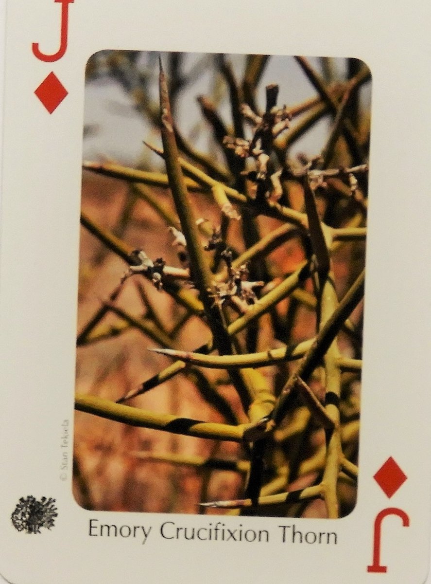 Mi-Shell Posted September 8, 2019 Posted September 8, 2019 ♥ @Madame Squee!♥ I would loe to hear about the adventures you had! Your Tree for the day = Jack of Diamonds = Emory Crucifixion Thorn Holy smokes, maybe I should stay in bed today! This one sounds like a doomsday Tree! Luckily it grows only in the Sonora and Mohave deserts and is actually endangered. As the Jack of Diamonds, it has its strong sides, like when it provides shelter and nesting habitat for desert Birds and its sap is an insecticide against termites and other parasites. The sharp thorns were used as needles by the Tohono O'odham People The thorns are impenetrable and any invaders are stopped in their tracks. This however makes it a good prickly place to build a nest and raise some baby Birds🐣🐤🐥