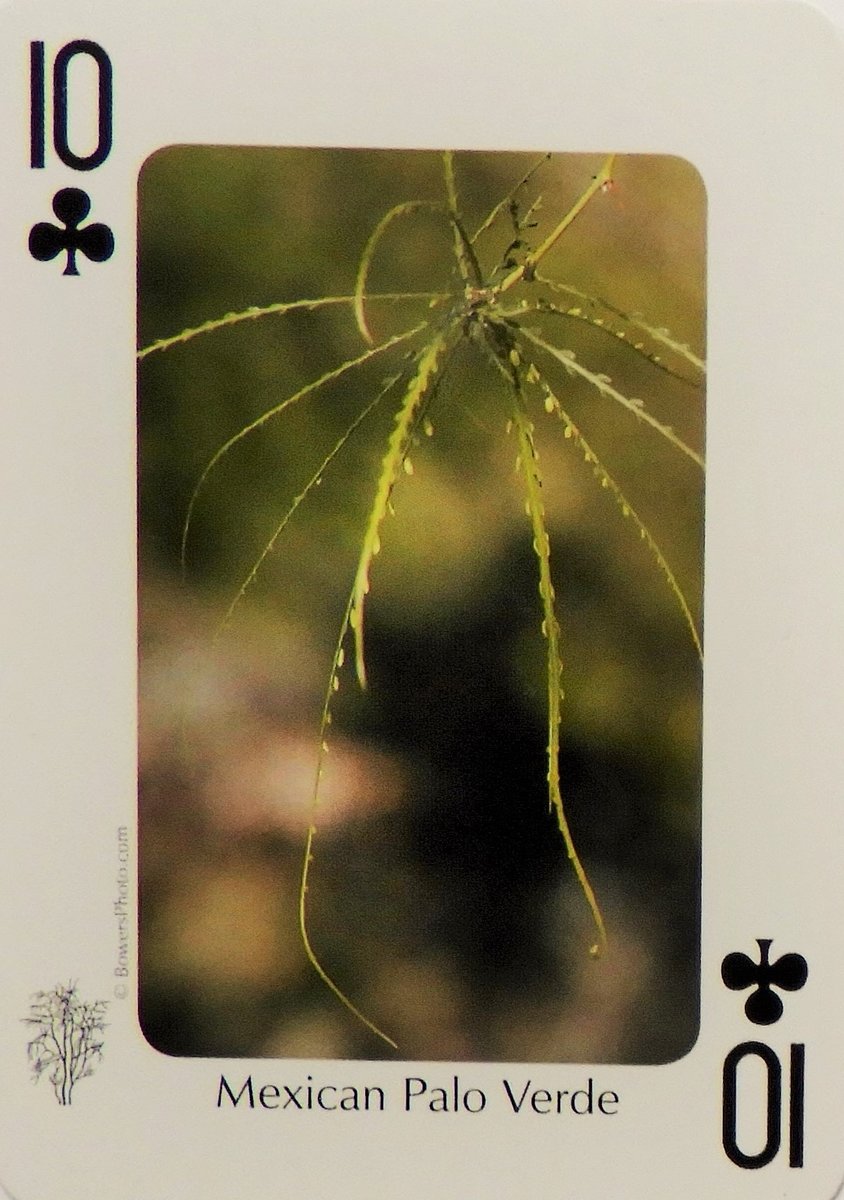 Mi-Shell Posted September 7, 2019 Posted September 7, 2019 (edited) Your Tree for the day = 10 of clubs – again!! Mexican Palo Verde This is a two faced situation! This Tree is easy to grow and very drought resistant and so , even when the heat is relentless, this one will leaf out and bloom! But!! Be careful, where you plant it, it will take over!! It became a persistent pest in Australia and is difficult to eradicate. Restrain and careful planning is a must! Then however, the rewards are pleasant. It will provide shade and a delicate light green crown with yellow flowers. Edited September 8, 2019 by Mi-Shell spppehlink!??!! :)