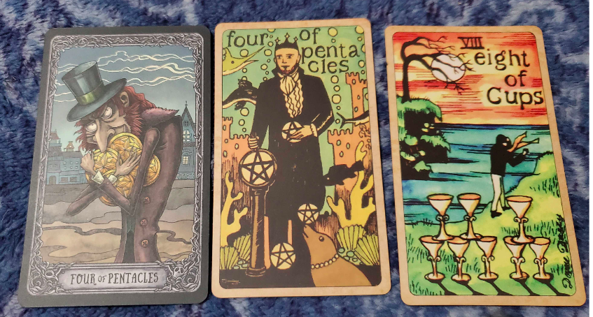 bookshop Posted September 21, 2019 Posted September 21, 2019 (edited) @Aldor44 one thing I do a lot — and not really with intent, but because this is just how I am, lol — is make up stories about the characters in my decks, or just spend a while absorbing the stories that are already in them. For instance, the Jugendstil uses people for all the major arcana, and the moment I had it in my hands, my brain came up with a whole love story between the hot magician and the hapless hanged man. And I made a thread here dedicated to the running love triangle I have made up that's running through the dark mansion tarot! Another thing I do is sort of the inverse of doing fictional readings with the cards (though I recommend that, too!) — I like to assign fictional or historical figures to the characters in my new decks, and sometimes songs to the images. For instance! The Four of Pentacles in my Dark Mansion deck is clearly Ebenezer Scrooge, but the four of pentacles in my Dame Darcy Mermaid tarot is clearly Dr. Stephen Maturin from the Aubrey-Maturin books, haha. And the eight of cups in the dame darcy deck is one of my favorite cards ever, and I associate it — just this version of the 8 of cups — with the song "Joey, Joey" from Most Happy Fella. So I suggest doing creative associations like these, they help you get really comfortable with the cards really quickly, in my experience! Edited September 21, 2019 by bookshop hit post too soon!