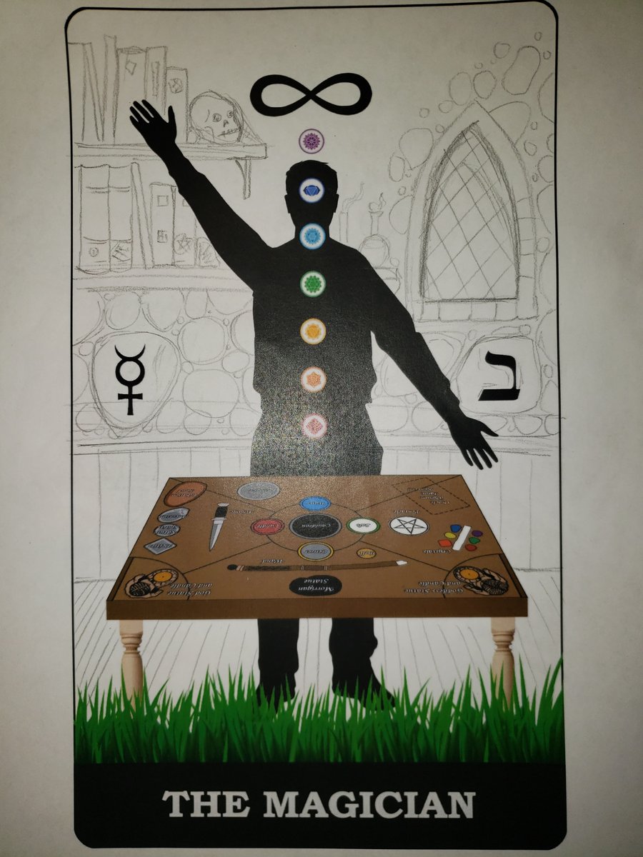 Raggydoll Posted February 1, 2020 Author Posted February 1, 2020 3 hours ago, Morsoth said: Let say it will "ressemble" this, but the figure will have clothes and a face: All the grids will be invisible. It is only a pattern for using Sacred Geometry in my drawings. Absolutely nothing is drawn yet. I only showed the concept and the hidden pattern. I think it add some magickal oomph. Tomorrow I'll use that layout and draw the card on another page. I'll scan it and "ink" and add color in Photoshop! I might have misunderstood something but I still want to point out two things to be sure: remember that WE add the titles and remember to not have any details too close to the sides as this is a borderless deck. The safety lines are about 0,5 inch from the sides in the finished format (needs to go up if you work on a larger scale). Maybe you have already taken that into account, I just got a bit worried because on that drawing many details are too close to the edge and would be lost. It’s a really cool concept though!!