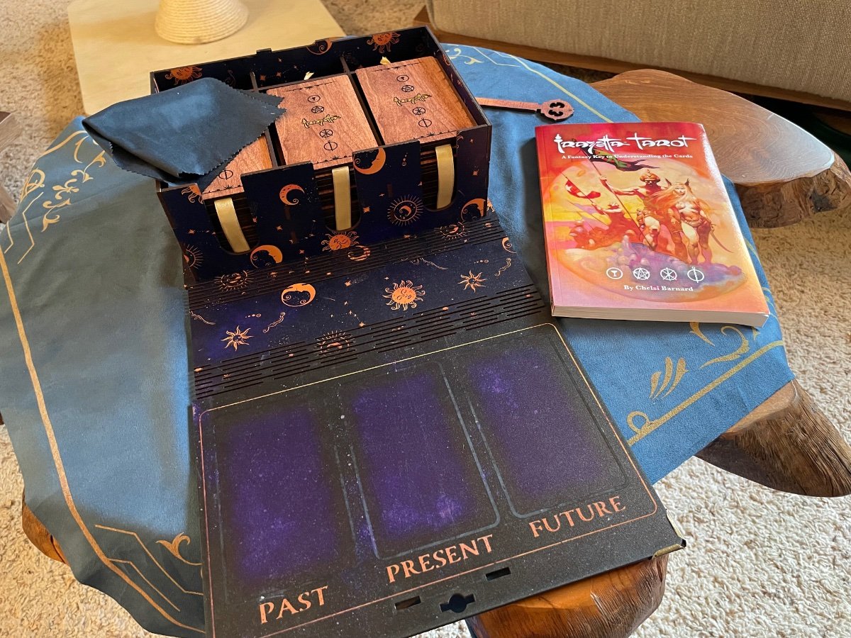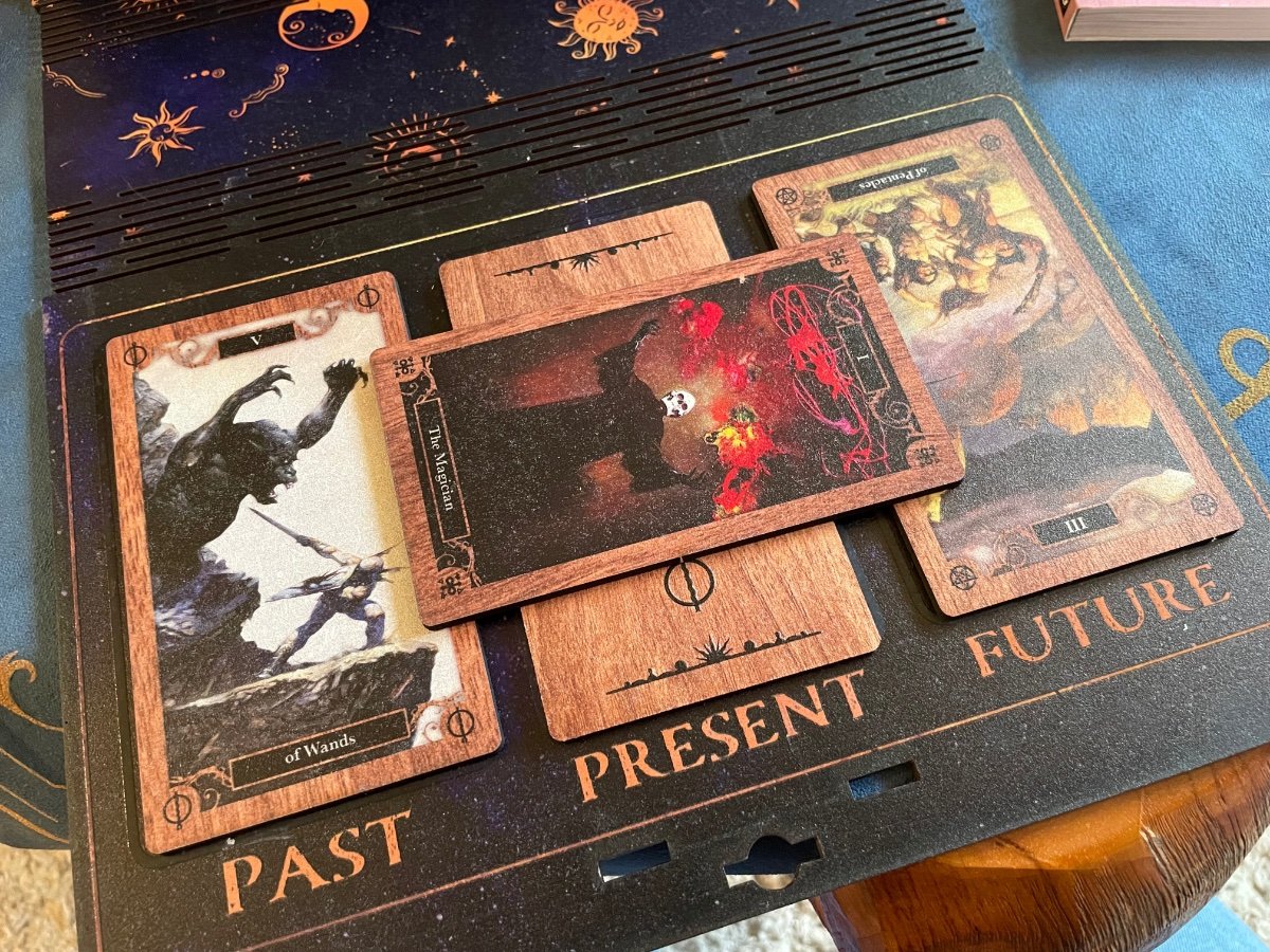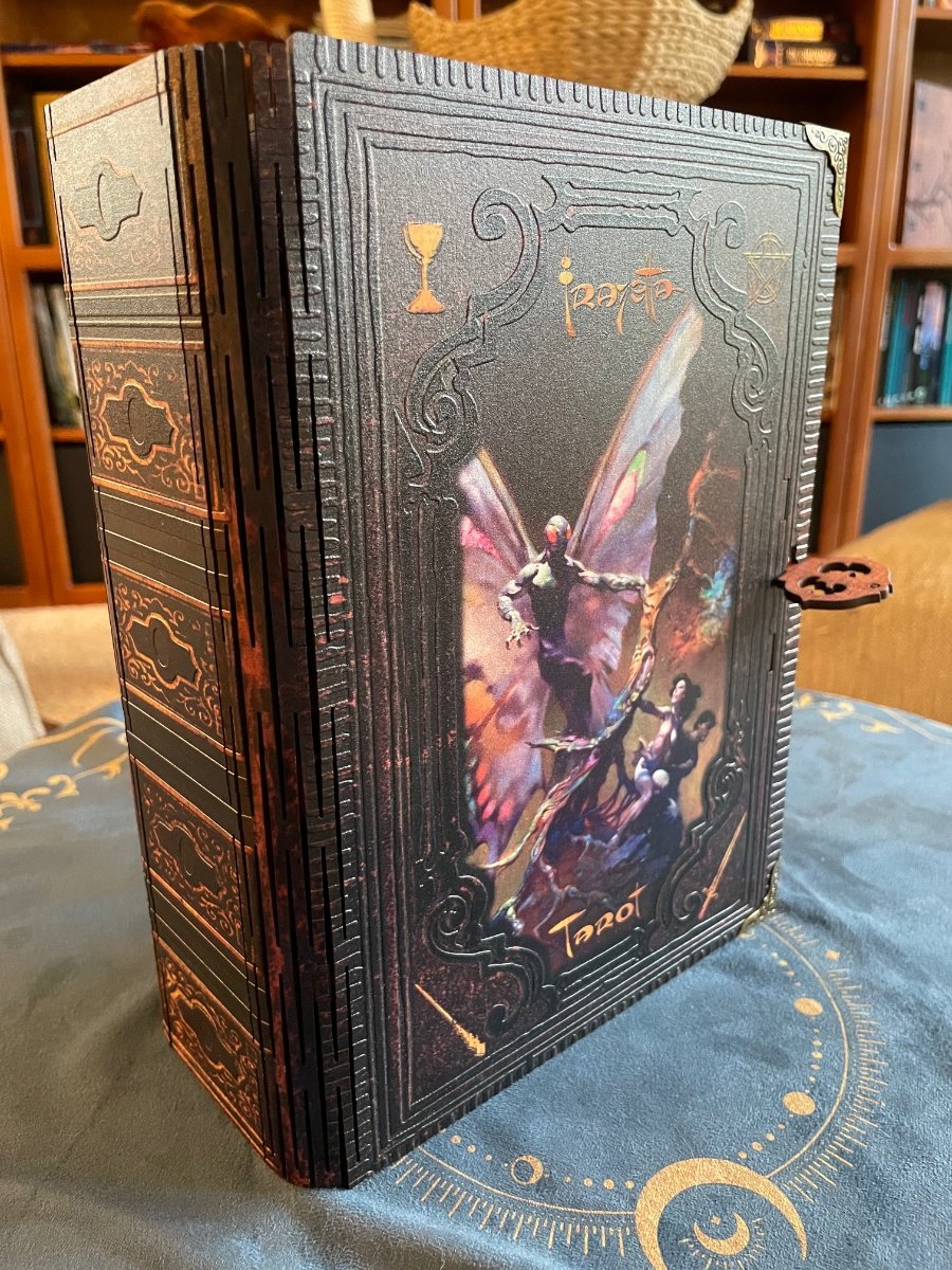 myrrh Posted October 6 Posted October 6 On 12/28/2024 at 11:36 AM, Ferrea said: A few weeks ago Lo Scarabeo sent an email announcing their release of the Frazetta Fantasy Tarot. Today, they shared the actual date when it will launch on Kickstarter. First off, I’m excited about this deck since I’m all for boobs and muscles—and artwork created by people who have truly mastered their craft. Additionally, I think these aesthetics reflect aspects of the upcoming Neptune ingress into Aries: the idealisation of raw, uncivilised masculinity. There has been another Frank Frazetta Tarot quite recently on KS. ...i generally have mixed feelings about about artist catalog decks: i appreciate the showcase but feel tarot symbolism works best with bespoke art...that said, i made an exception for quimbley's wooden frazaetta deck and it's a nice production!.. ...it shipped flat-packed + laser-cut; i still had to punch the cards and parts to build the case but it's a formidable deck; santa muerte deck pictured for scale... (imgur dot com slash a slash plPmBk6) ...the wooden cards are extraordinarily thick and feature silkscreened artwork, which softens the images but kind of works with frazetta's style...it's a bit of a chore to shuffle but this deck is all about the tactile experience; even the linework is slightly raised and and it includes the nicest heavy-velvet tarot mat in my collection, really lush to the touch... ...sadly, i think this was the only product quimbley brought to market before they folded...