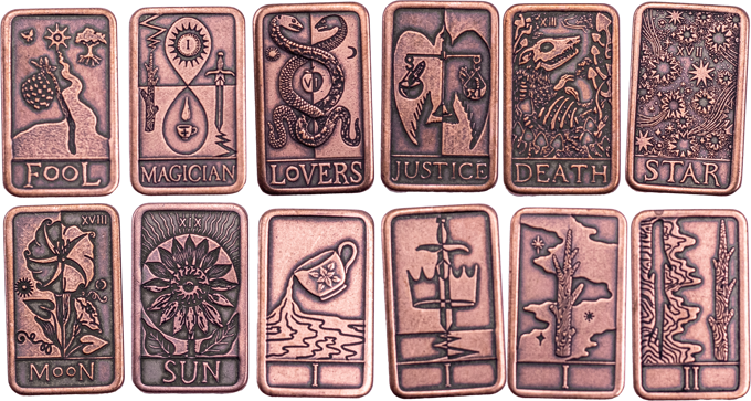 myrrh Posted Thursday at 01:47 PM Posted Thursday at 01:47 PM ...along a similar vein of alternative materials, this copper tarot 'deck' looks pretty cool... https://www.kickstarter.com/projects/shirepostmint/minted-copper-tarot-coins-with-original-linocut-art-prints ...they're tiny, *coin sized*, but i'm impressed by the designs, which despite the size limitations feature surprisingly faithful tarot imagery...