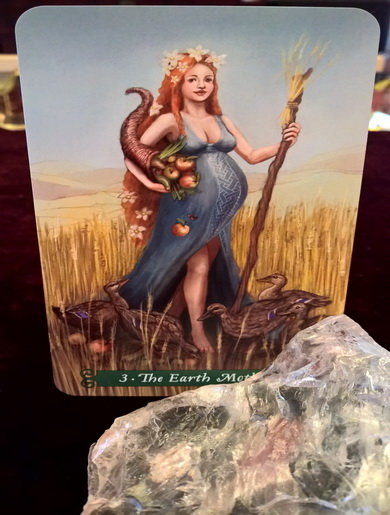AeonHorus Posted January 22, 2020 Posted January 22, 2020 (edited) 3 ~ The Earth Mother:~ The final card of the divine Feminine is where we find the power of motherly love and abundances of emotions. The Earth Mother is lovingly attending to and nurturing her flock of ducks who, are in themselves also female. They are gathering around her feet and greedily gobbling up all the fruit that she is dropping from her basket. She is out there standing in the middle of a field of wheat that is ripened and ready for the harvest and she carries a staff of twisted hawthorn with tufts of wheat tied to the end showing that she as we all are intrinsically tied to our mother earth. The ducks would symbolise emotional strength, abundance and fertility, where as the wheat would show that the time to harvest is upon us and nourishment is now there for the taking. Edited January 23, 2020 by AeonHorus