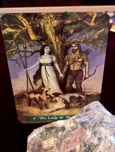 AeonHorus Posted January 22, 2020 Posted January 22, 2020 (edited) 6 ~ The Lady & The Lord:~ These two bring together the power of the divine Feminine and the divine Masculine and give rise to the ultimate energy. The two together have the power to create anything and everything so long as loyalty stands with them. They look like they are the Witch from the #1 card and the man in the Battle Wagon #7 card coming together for a secret liaison under their sacred tree which would bring the first seven cards of phase 1 to a nice close as they depart. Even though they are the Gemini twins, they do however have a choice for they do not need to be together they are not family born unto one another but they have surrendered themselves to each other in order to gain a higher fulfilment in life. He wears a tunic of ivy to suggest a connection and they stand united under an old oak tree which in itself means wisdom and truth, their two dogs stand loyally at their feet which is also significant to loyal friendships and protection. Edited January 23, 2020 by AeonHorus